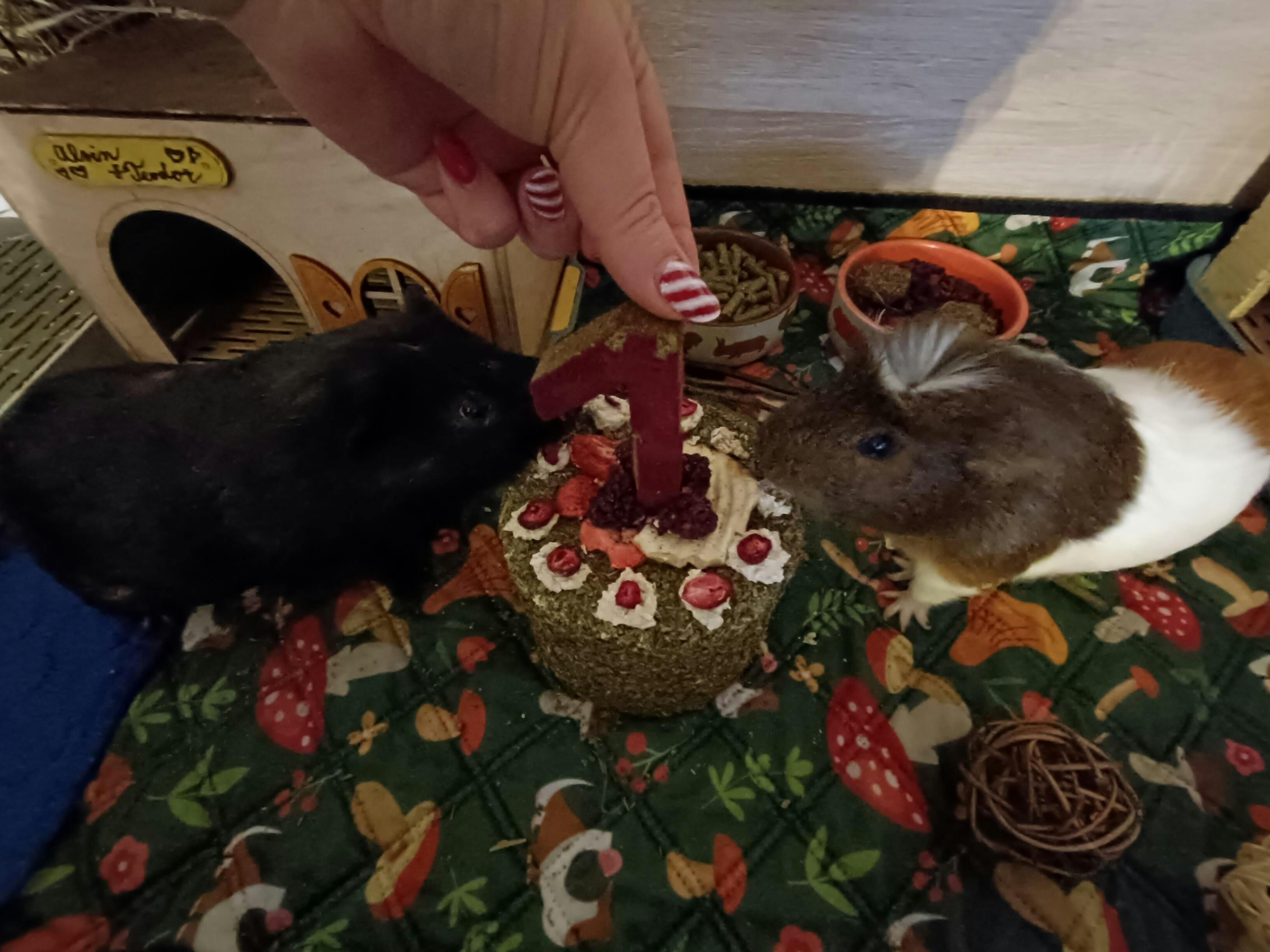 Ozdoben je ovocem sušeným mrazem - brusinka, borůvka, černý rybíz, jahoda, malina, ostružina, jablko. Lepeno ovesnou kaší.